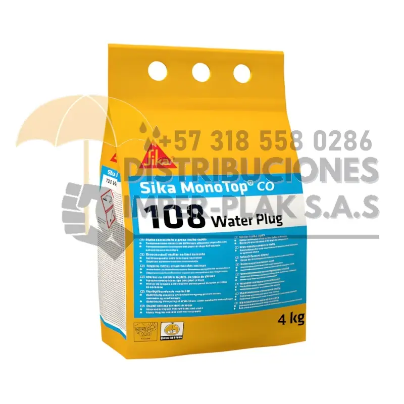 SIKA MONOTOP-108 WATER PLUG CO GRIS MORTERO SELLA GRIETAS EN TANQUES X 18kg